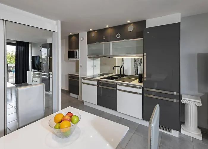 Appartement New York - Heliopolis O15 - Luxe -By Agn - 2 Personnes beschikt over een kitchenette en over alle nodige artikelen, inclusief een koelkast en een vaatwasser, die daar gevonden kunnen worden. DeVillage Naturiste bushalte is op 550 meter ervandaan.
